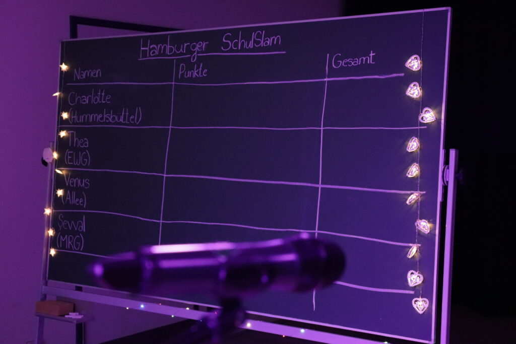 Der Hamburger SchulSlam ist ein klassischer Poetry Slam, bei dem die besten Slammer*innen aus Hamburger Schulen gegeneinander antreten. Ziel ist es, jungen Menschen eine Bühne für ihre Gedanken und Gefühle zu geben und einen künstlerischen Austausch zwischen verschiedensten Schulen zu schaffen. Keine Ahnung was ein Poetry Slam ist? Du möchtest mit deiner Schule antreten? Keine Idee für deinen Text? Dann helfen wir dir auf dieser Seite!